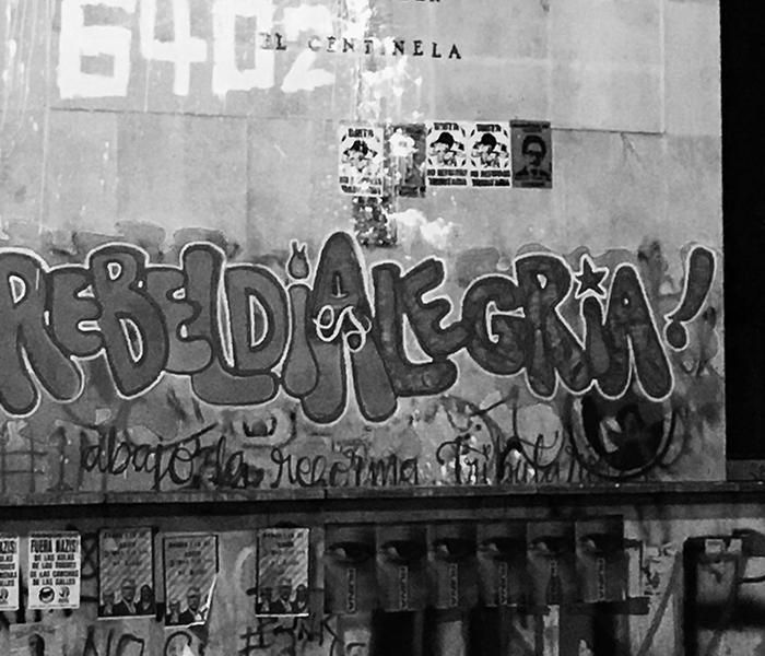 La situación política del país ha llevado a la población a salir a la calle para manifestarse en busca de distintas reivindicaciones y el movimiento graffiti ha participado activamente en esta movilización. Su capacidad comunicativa ha servido para denunciar y al mismo tiempo para hacer visibles las demandas y los sentires de quienes se manifiestan. Denuncias, demandas y sentires que, aunque pueden sumarse a las de otros países en similares circunstancias, sólo son posibles en un territorio como este. Un graffiti que dice “¿Dónde están? 6402” o “MINGA fuerza minga” solo tiene sentido si se entiende desde el contexto colombiano en su presente.